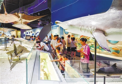 据介绍,两个多月来,海博馆客流量明显攀升。数据显示,6月,周末日均客流量达1.2万人次,较4月增长81.61%,其中84.59%为来自山东、北京等地的游客。“我们希望通过延长开放时间和丰富活动内容,让不同时段的游客都能获得更好的参观体验。”刘洁说。