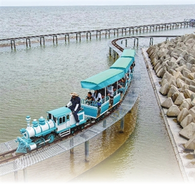 浅滩赶海、抓鱼摸蟹、桨板体验、魔网蹦床、无动力乐园、海上小火车……在海贝乐园,一大批游玩项目深受亲子游客欢迎。自5月起,亲海景区就迎来文旅旺季。5月,这里接待游客超60万人次,6月和7月客流量持续增长。目前,亲海景区接待的游客中,外地游客约占30%。